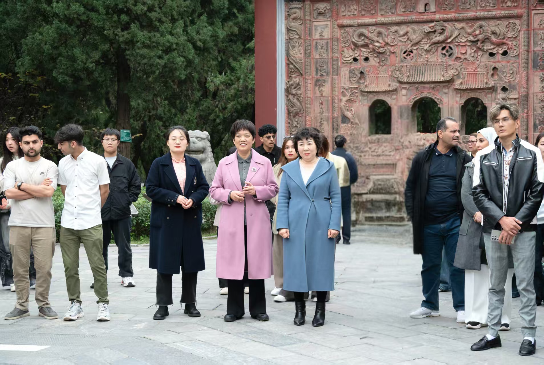 11月12日下午,我校在南阳武侯祠成功举办“三国文化探源·中外青年共谱武侯情”中外师生文化实践活动。校长范真、副校长刘荣志、来自伊密里欧学院与林肯大学学院的外籍教师团队,以及我校中外师生代表100余人参加活动。活动由纪委书记刘金云主持。