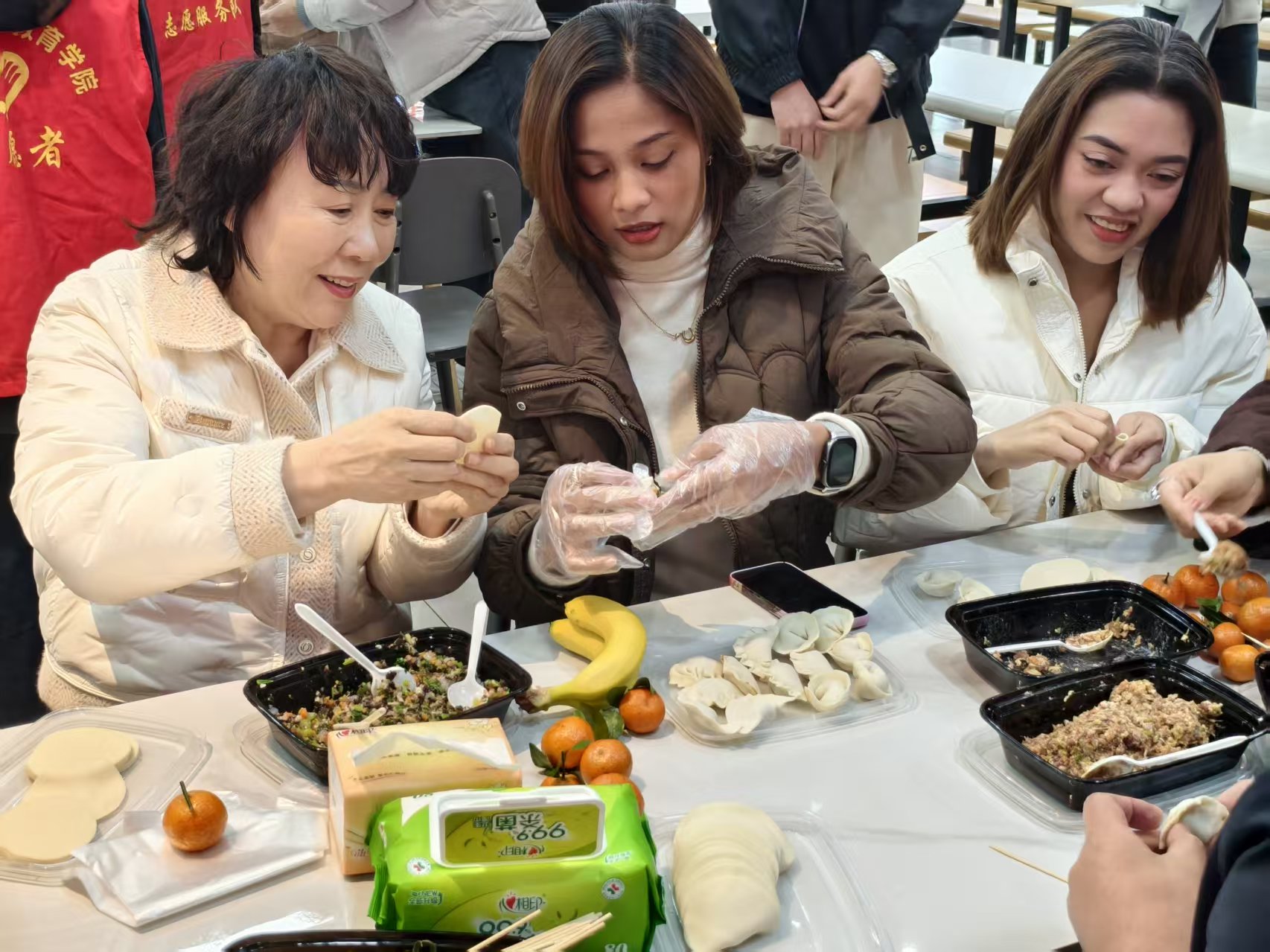 12月23日上午,我校举办“饺香满溢迎元旦,中外师生乐团圆”中外师生包饺子文化交流活动。纪委书记刘金云出席并致辞,外事国教党总支中外师生参加。在欢声笑语中感受中华优秀传统文化魅力,共迎元旦佳节。