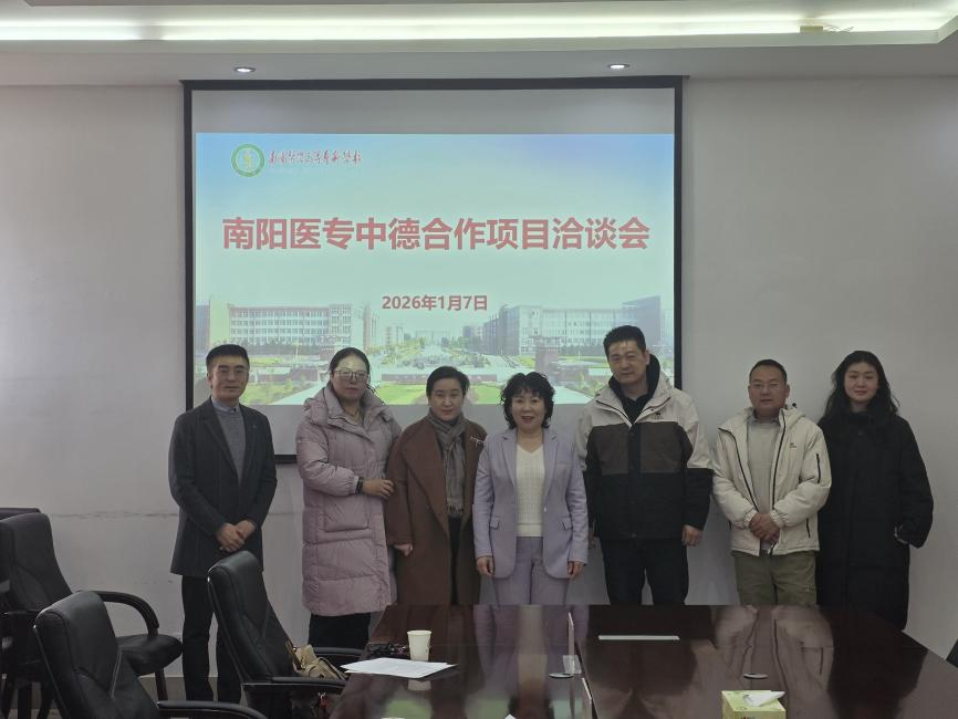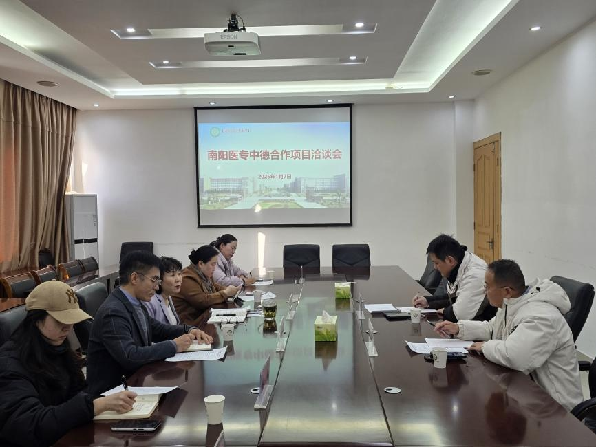 1月7日上午,我校与南阳市草芽榕树信息咨询服务有限公司举办中德合作项目洽谈会,校党委委员、纪委书记刘金云,南阳市草芽榕树信息咨询服务有限公司董事长周岩、业务总监李权等出席,对外合作交流处、国际教育学院有关负责同志参加。