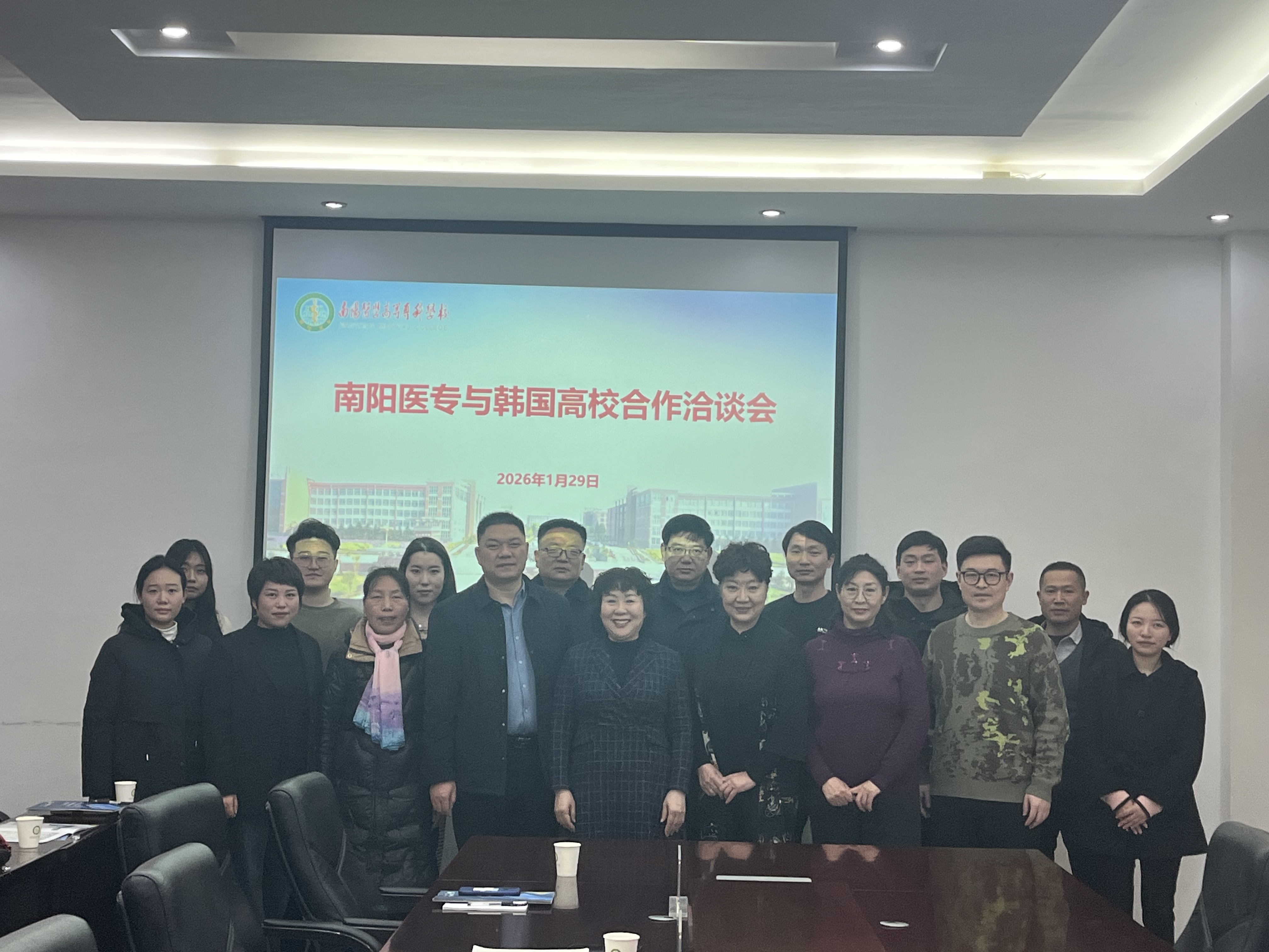 1月29日下午,韩国大邱韩医大学和韩国建阳大学驻中国事务所代表、北京万极咨询有限公司董事长董永洁一行访问我校并举行洽谈会。校党委委员、纪委书记刘金云出席,学校相关部门负责同志及涉学系部(院)学工办主任参加。