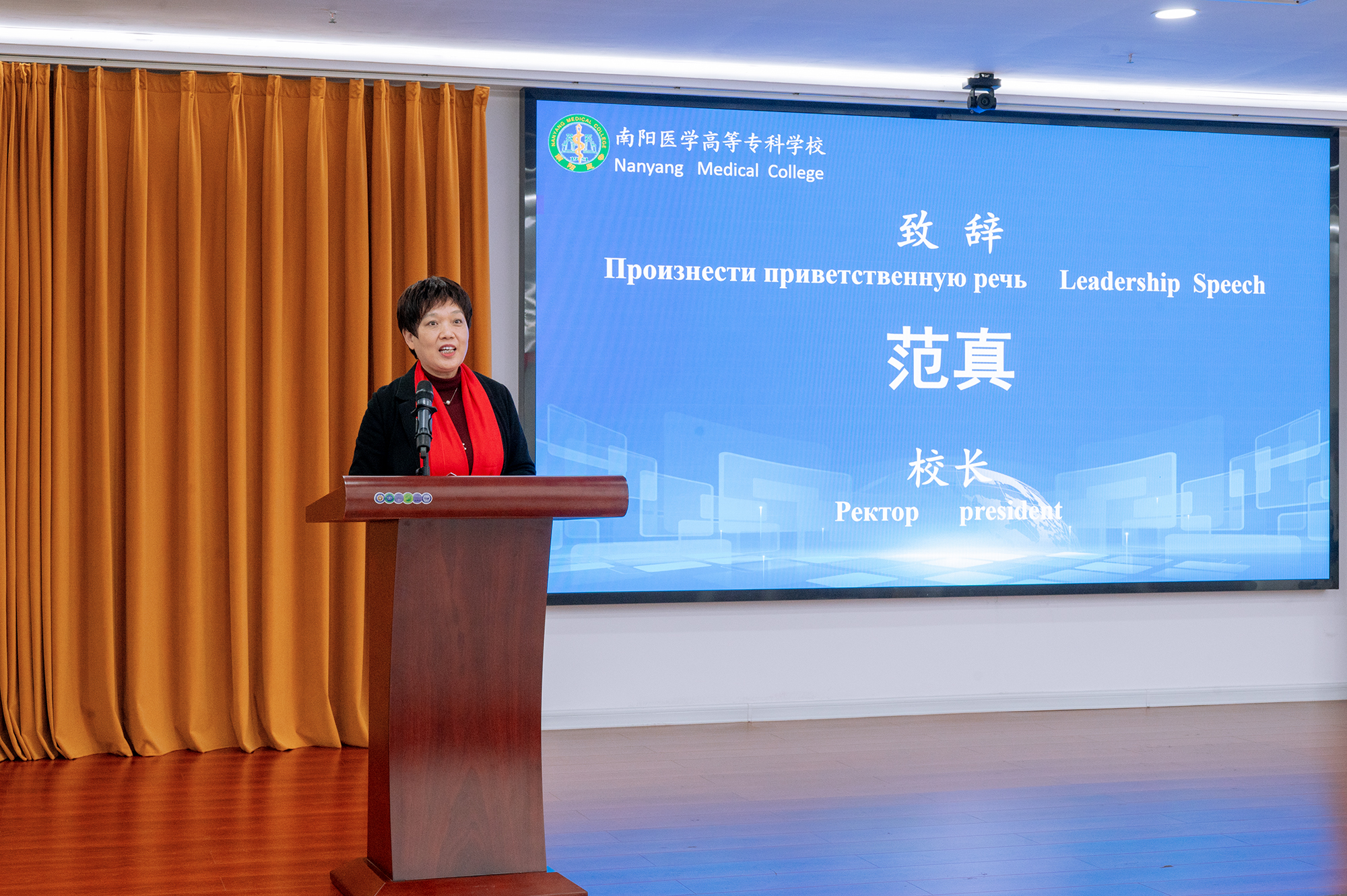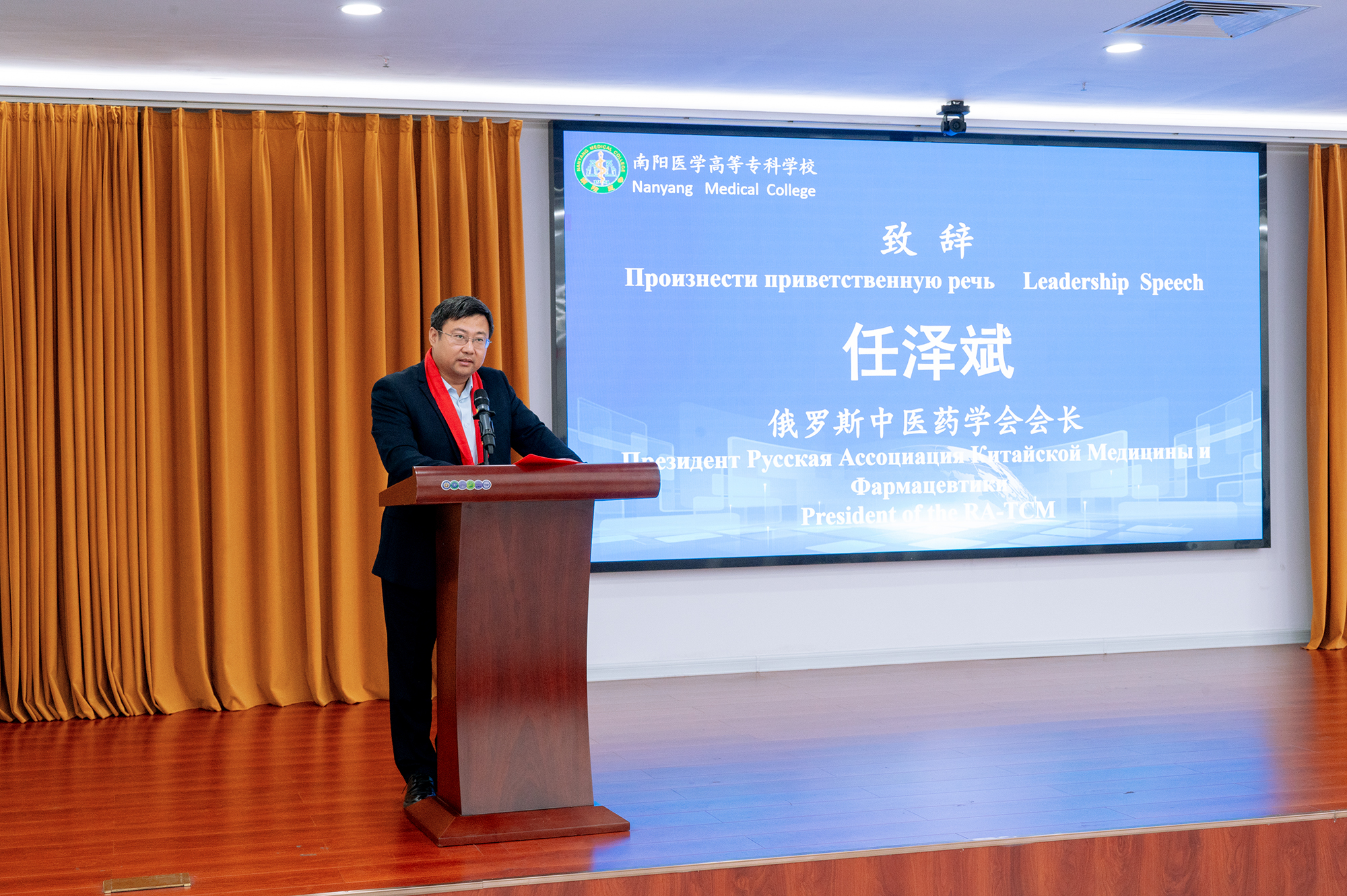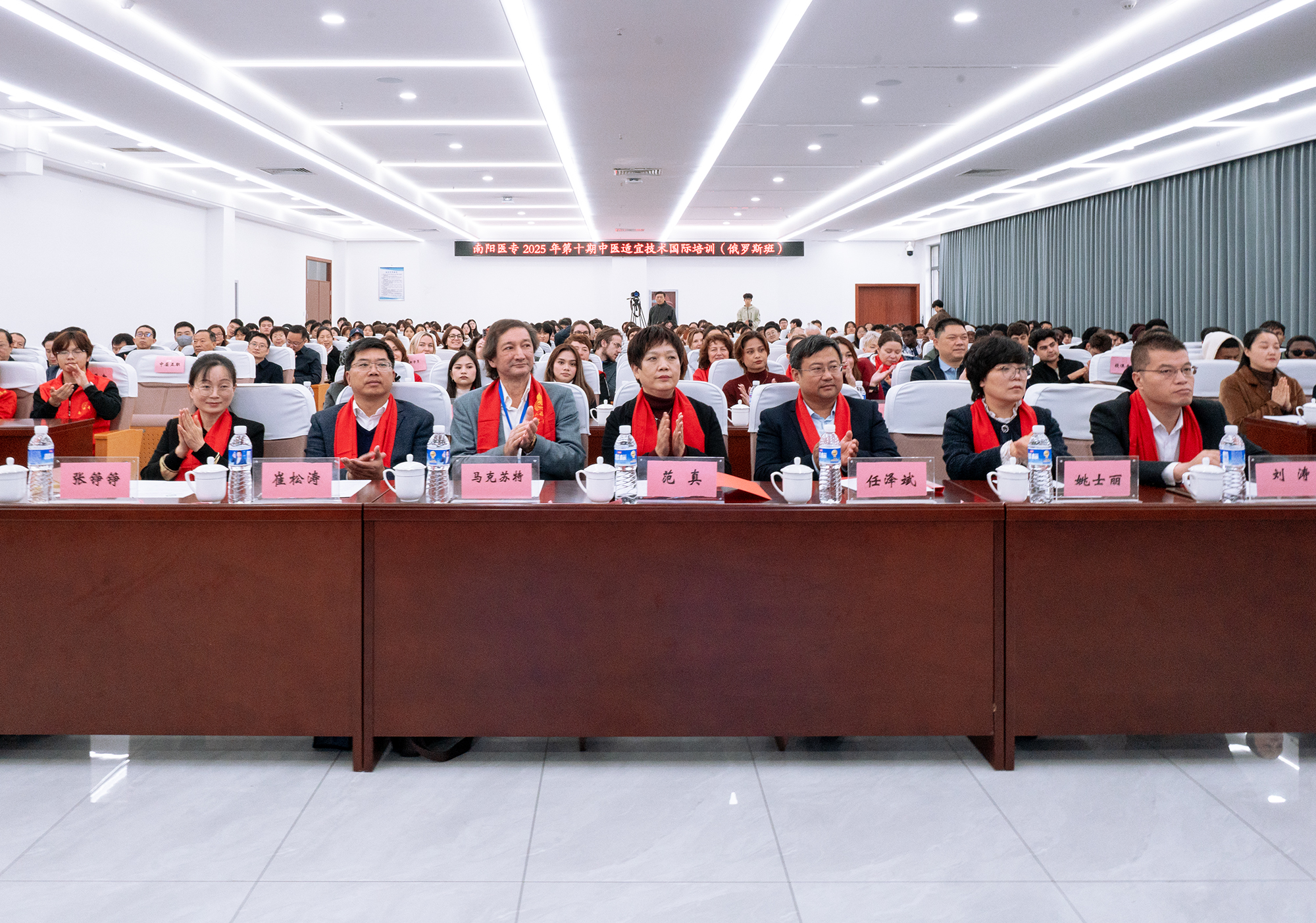 10月27日上午,我校举行2025年第10期“仲景工坊”——中医适宜技术国际培训(俄罗斯班)开班仪式。市委办、市商务局、市中医药管理局、张仲景博物院相关负责同志,校长范真及校领导班子成员,俄罗斯中医药学会会长任泽斌、副会长马克苏特,30余名俄罗斯学员代表齐聚现场,共同见证开班时刻,仪式由纪委书记刘金云主持。